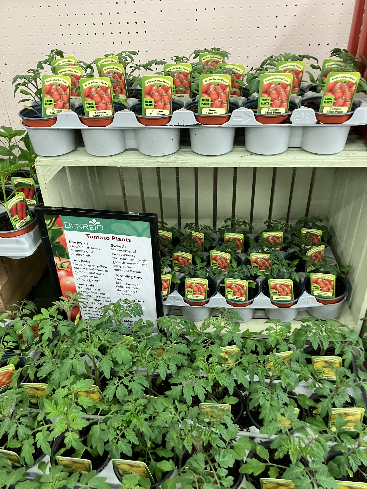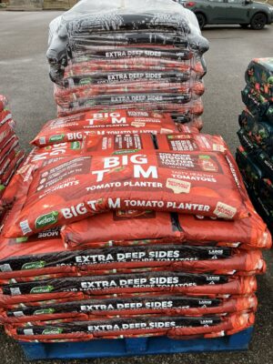 Tomatoes, sweet peppers and vegetable packs all arrived this morning. Remember tomatoes and peppers need to be kept above 12c at night time. Unheated glasshouses and cold frames will drop below that at night and will struggle on cloudy days! We have everything you need from grow bags, pots, canes, fertiliser and even max min thermometers đŸ˜‰. Cucumbers aren’t ready in the nursery and I think it’s to cold/early for them, maybe next week.